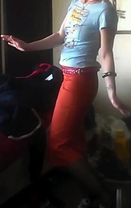 One of my own favorite — Orange leopard print coupled with a light blue T-shirt and accessorized with fish net stalkings, red thin leather belt and Converse. Nordstrom, $$$. 100MEDIA$VIDEO0053_0000016419
